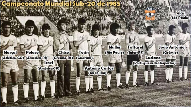 A Seleção Brasileira Campeã Mundial Sub-20 de 1985 em mais um jogo da sua campanha vitoriosa na Rússia.