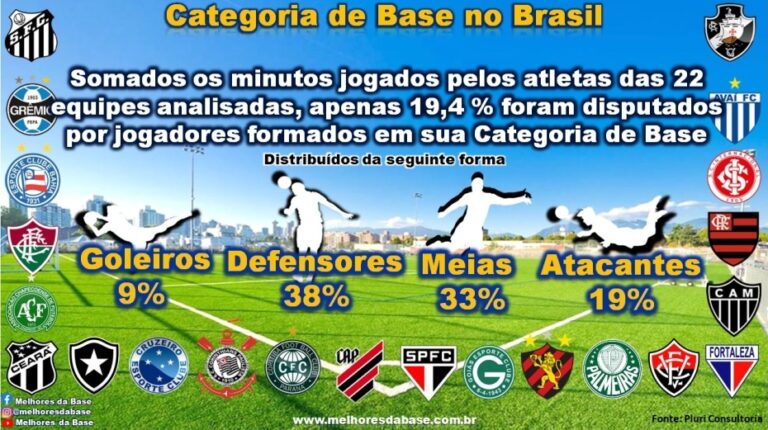 Recurso técnico fundamental para alguns, complementação de elenco para outros, fonte de receita para quase todos; as categorias de base representam papel importante para a formação de elencos no Brasil. Investimento e utilização na base são elementos estratégicos dos pontos de vista técnico e financeiro para os clubes, são a maior vantagem competitiva de nosso futebol. No entanto, ainda há quem hesite em utilizar jovens atletas formados dentro de casa. E é com o objetivo de analisar os clubes que mais oferecem oportunidades aos jogadores da base, que preparamos este relatório. Somados todos os minutos jogados pelos atletas das 22 equipes analisadas no estudo, 19,4% foram disputados por jogadores formados na base dos próprios clubes.