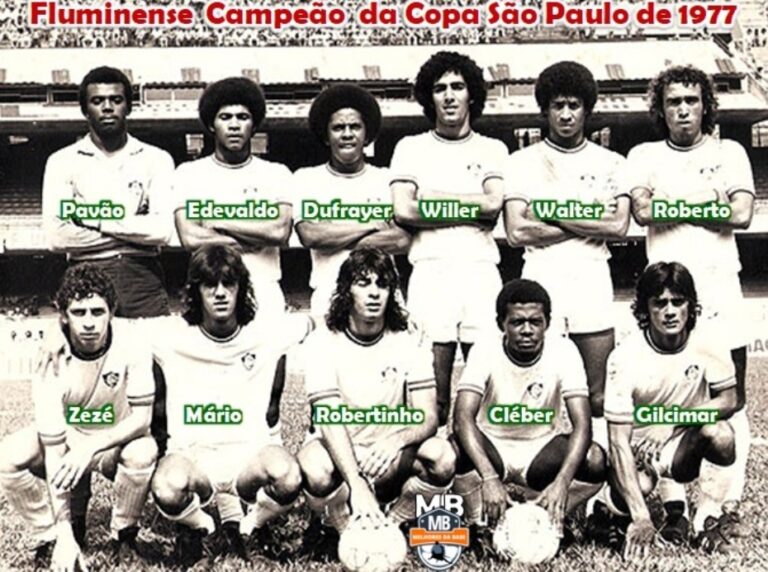 Pavão, Edevaldo, Viler, Wálter e Roberto. Dufrayer, Cléber e Mário. Gilcimar, Robertinho (Benê) e Zezé.