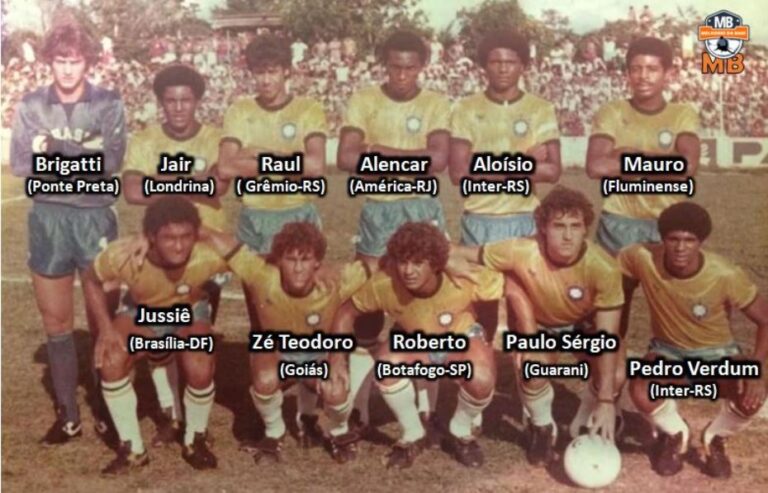 Seleção Brasileira Sub-17 em 1981, em jogo amistoso como preparação para o Torneio na Rússia, visando observações para o Sul-Americano Sub-20 de 1983. Dessa foto só foram para o Sul-Americano na Bolívia: o Goleiro Brigatti da Ponte Preta, o então Meia (que depois ‘virou’ Lateral-Direito) Zé Teodoro do Goiás e o Zagueiro Aloísio do Internacional do Rio Grande do Sul (que depois acabou negociado com o Barcelona da Espanha).