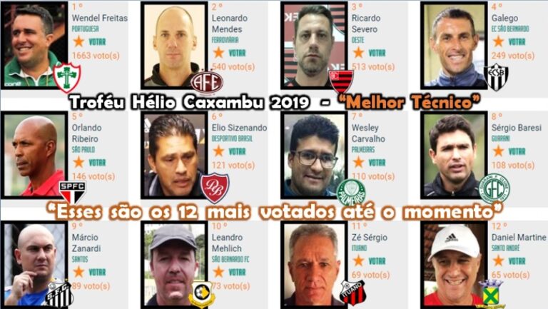 A votação para escolher os ‘Melhores da Base’ que concorrem ao Troféu Hélio Caxambu 2019 – “Melhor Técnico” continua aberta pelo nosso site. Todos podem votar, em quantos e quais profissionais quiser, lembrando que a votação é liberada uma vez por dia. Escolha e eleja seus preferidos.