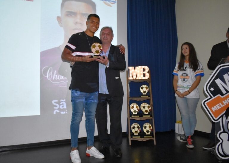 O Zagueiro recebeu a premiação das mãos de Mauro Costa, Diretor do Sindicato de Atletas de SP.