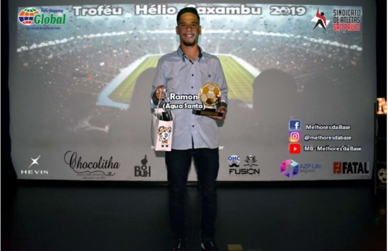 Ramon do Água Santa foi o escolhido como melhor 2º Volante e recebeu o Troféu Hélio Caxambu 2019, na cerimônia de premiação realizada no Grupo Educacional Drummond e subiu ao palco para receber das mãos do Professor Ricardo Torrado, responsável pela plataforma EducAtleta que em parceria com o Sindicato de Atletas de São Paulo disponibiliza vários cursos para estudo á distância.