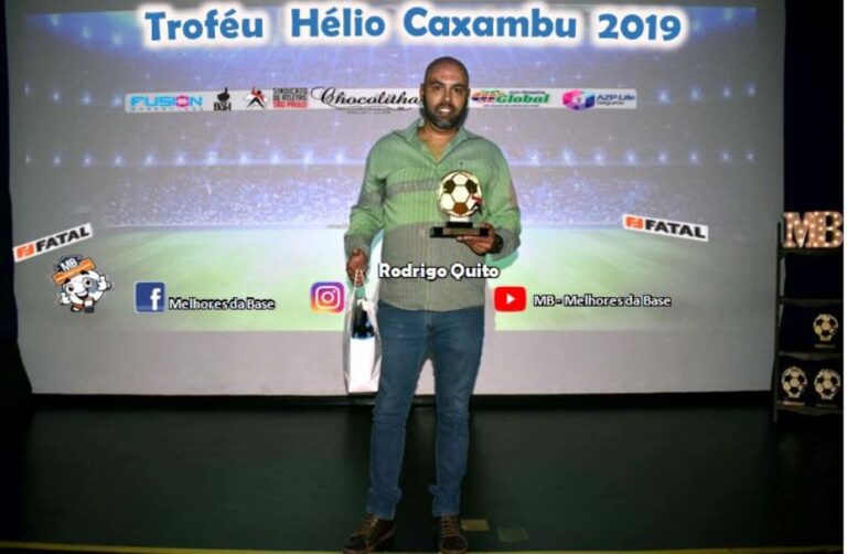 O competente Professor Rodrigo Quito responsável pela Preparação Física da equipe Sub-20 do Guarani foi o mais votado pelos torcedores / internautas e conquistou o Troféu Hélio Caxambu 2019 – ‘Melhor Prep. Físico’. Compareceu a cerimônia de premiação para receber o Troféu das mãos do Professor Aguinaldo Mota do Projeto Expressão Paulista do Sindicato de Atletas de São Paulo.