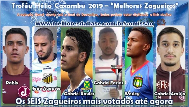 Dos DOZE Zagueiros na disputa pela maior premiação voltada as Categorias de Base do Brasil, esses são os SEIS mais votados até o momento, lembrando que os DOIS primeiros receberão o Troféu Hélio Caxambu para os Melhores do Campeonato Paulista Sub-20 de 2019 é totalmente decidido pelos internautas / torcedores, em votação aberta para escolher e eleger os Melhores de cada posição, formando assim a Seleção do Melhores da Base, portanto todos podem votar quantas vezes quiser, lembrando que só libera o voto uma vez por dia, podendo votar em quantos profissionais e jogadores quiserem!